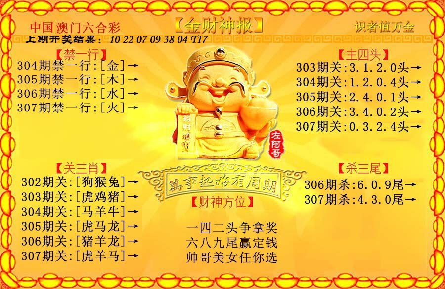 | 九肖 | 虎兔猴鸡狗猪鼠牛马 | 开:猴10 |